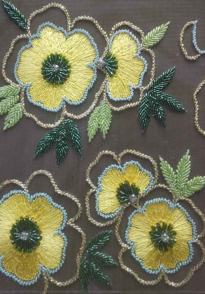 Decorative Beaded Lace Fabric With Floral Embroidery For Lehenga Styling Ideal For Weddings Receptions And Festive Occasions