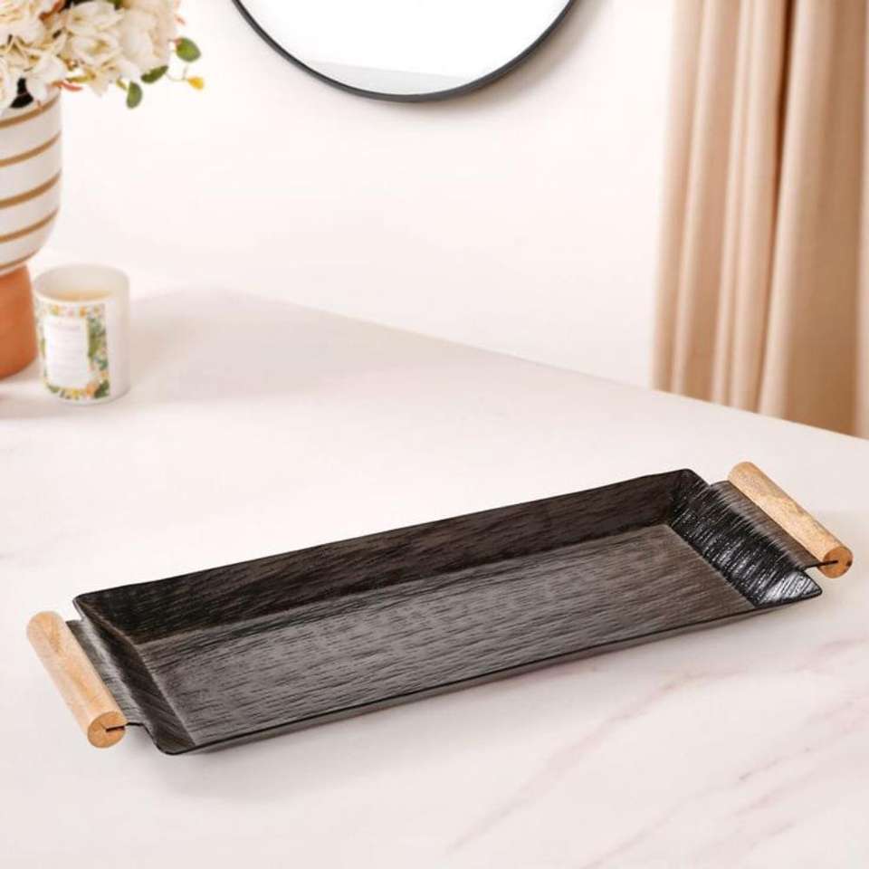 Decorative Black Tray With Handles Food Serving Trays For Holiday Christmas Decoration