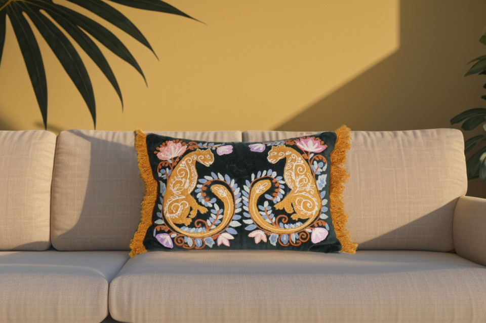 Decorative Bohemian 45x45 Cm Sofa Back Support Giraffe Embroidered Cotton Square Cushion Covers at Best Prices