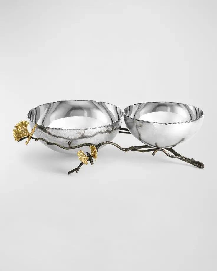 Decorative Bowl for Two Stainless Steel Beautiful Serving Bowl With Golden Leaf Accents For Home And Weddings Hotels New Arrival