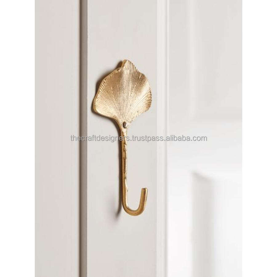 Decorative Brass Wall Hook Cast Brass Gingko Leaf Design Bathroom Hook Wall Decor Accessories Decorative Antique Hooks For Sale