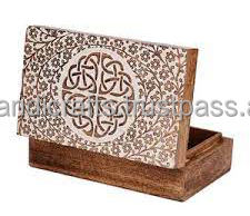 Decorative Carved Wooden Boxes Home Office Locking Wood Storage Hinged Lid Keepsake Carved Wooden Box