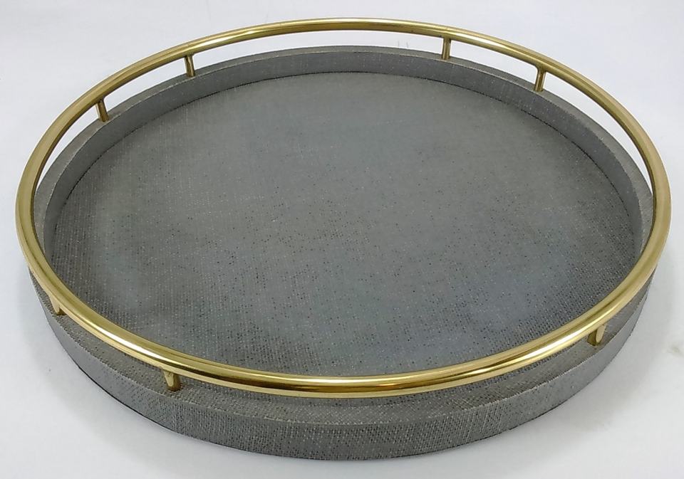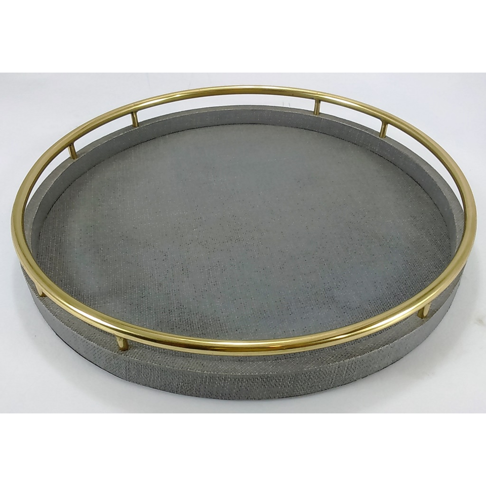 Decorative Charcoal 0.51x0.51x0.06 Serving Veneer Edges Tampered Faux Raffia Round Tray Faux Shagreen Serving Tray from Vietnam