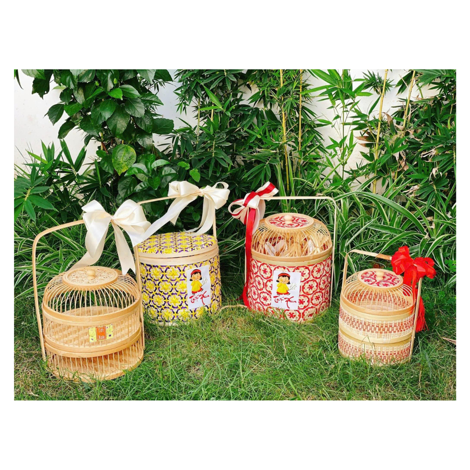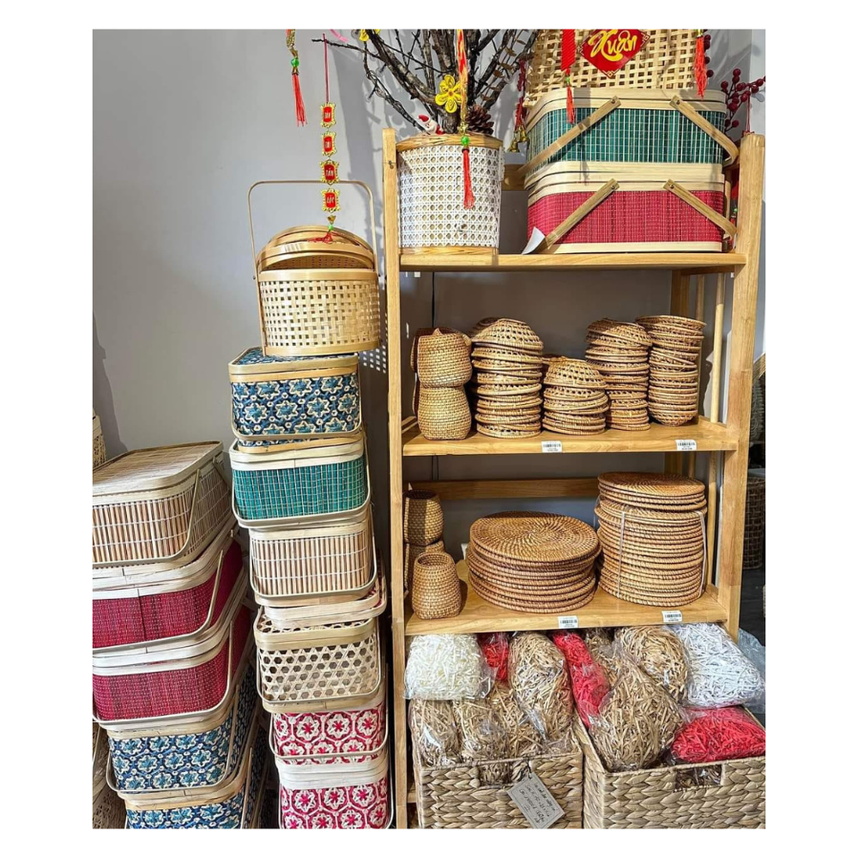 Decorative Colorful Bamboo Basket For Tet Gift Presentation And Festive Use
