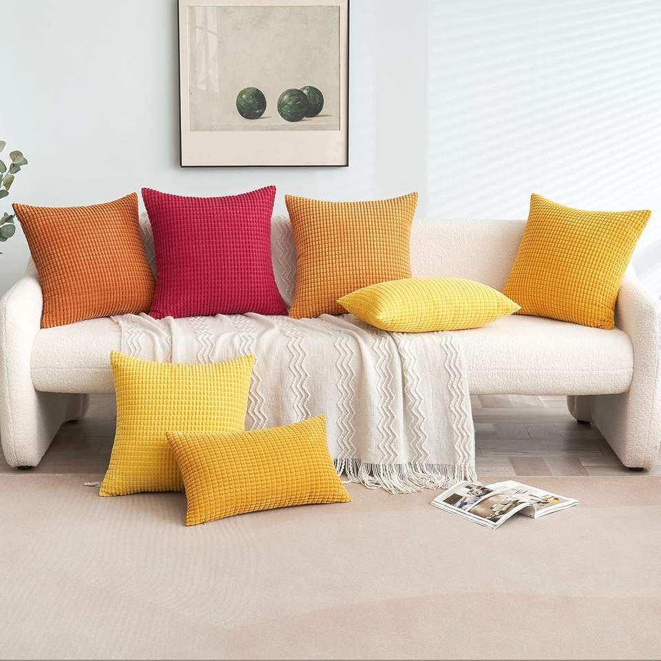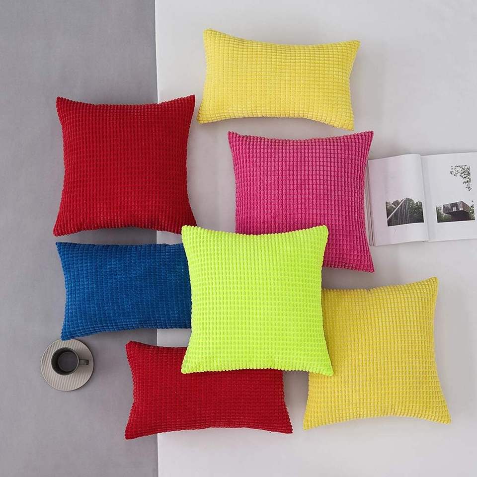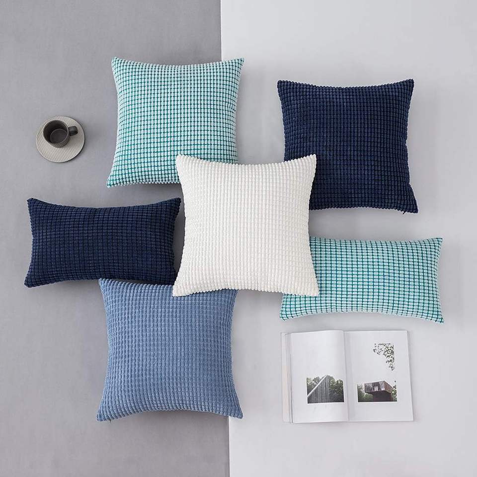 Decorative Corduroy Cushion 45cm x 45cm Striped Solid Square Throw Pillow Cases for Sofa Couch Home Bedroom Sky No Latex