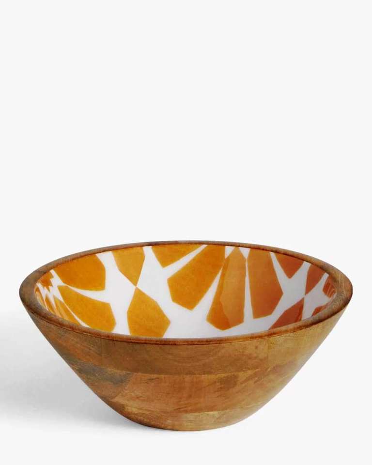 Decorative Design High Quality Bowl with Enamel Printing Design Wooden Fruits Bowl Mixing Salad Server Mango Wood Mixing Bowl