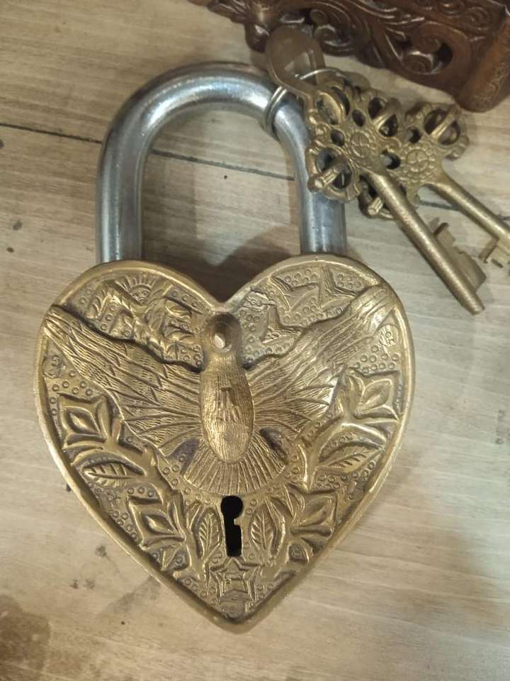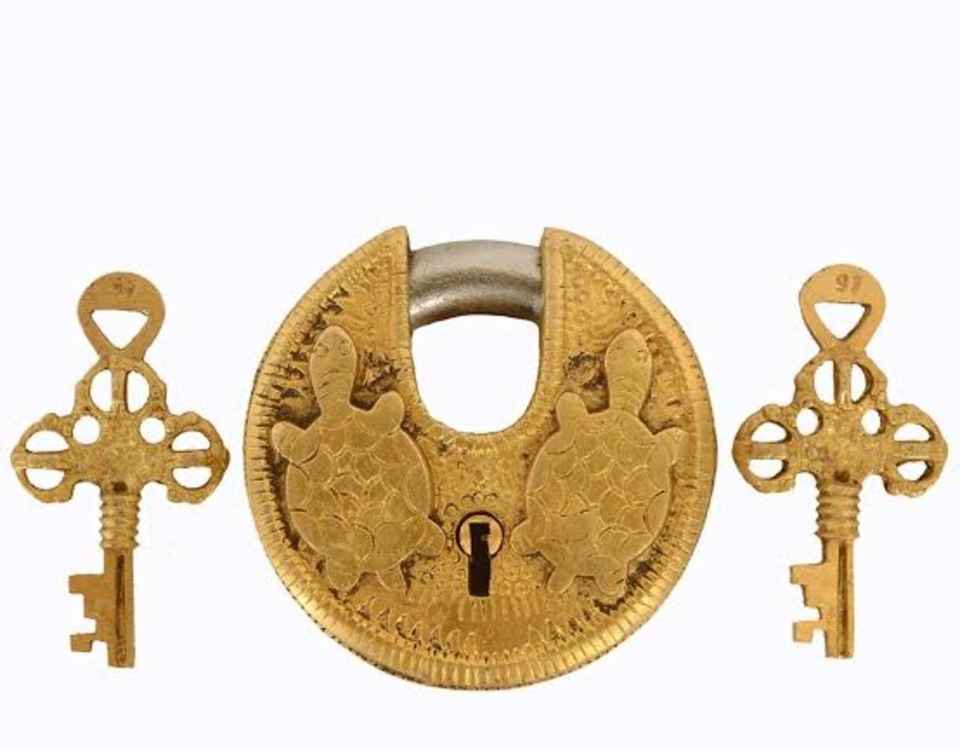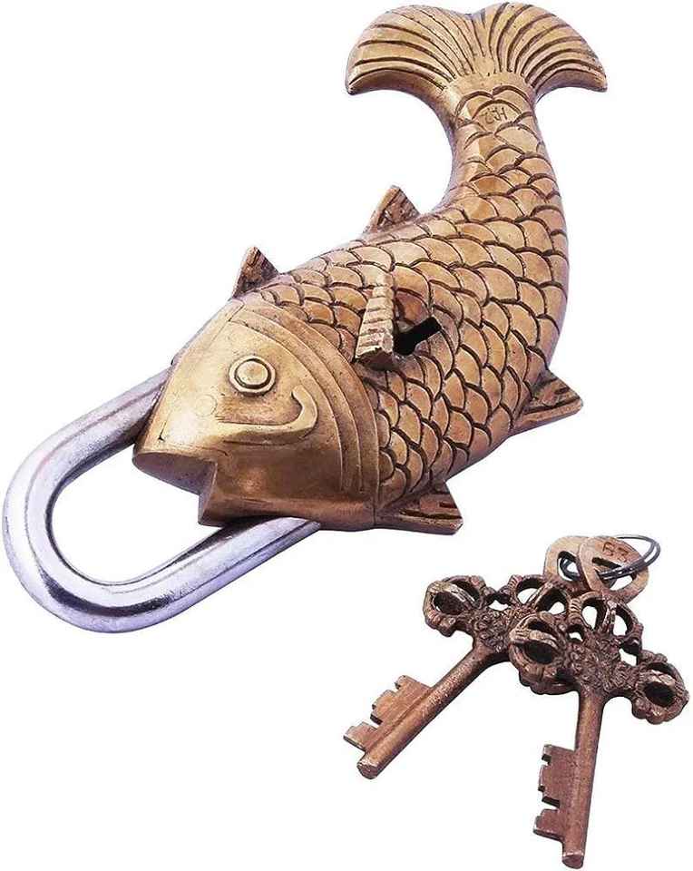 Handmade Designer Brass Door Padlock Double Key Lock with Fish Shape Decorative Alloy Handicraft with Keys