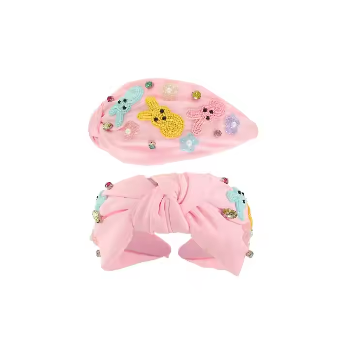 Decorative Eco-Friendly Handmade Easter Knot Headband Bunny Rabbit Design Embroidered Easter Eggs Beaded Details Festive Holiday