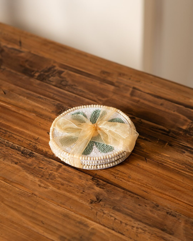 Custom Designed Embroidery Coasters with Beaded Detailing Vintage Drink Coaster for Home Bar for Parties