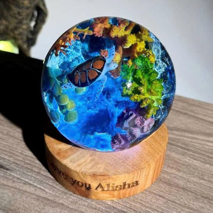 Decorative Epoxy Resin Crystal Ball Night Light, Ocean Turtle Model