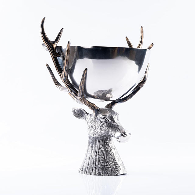 Decorative Figure Deer Reindeer Metal Silver Christmas Decoration Statue Sculpture Garden Lying Standing Wild Decoration