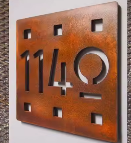 Decorative Garden Laser Cutting Rusty Steel House Name Plaques Corten Steel Sign