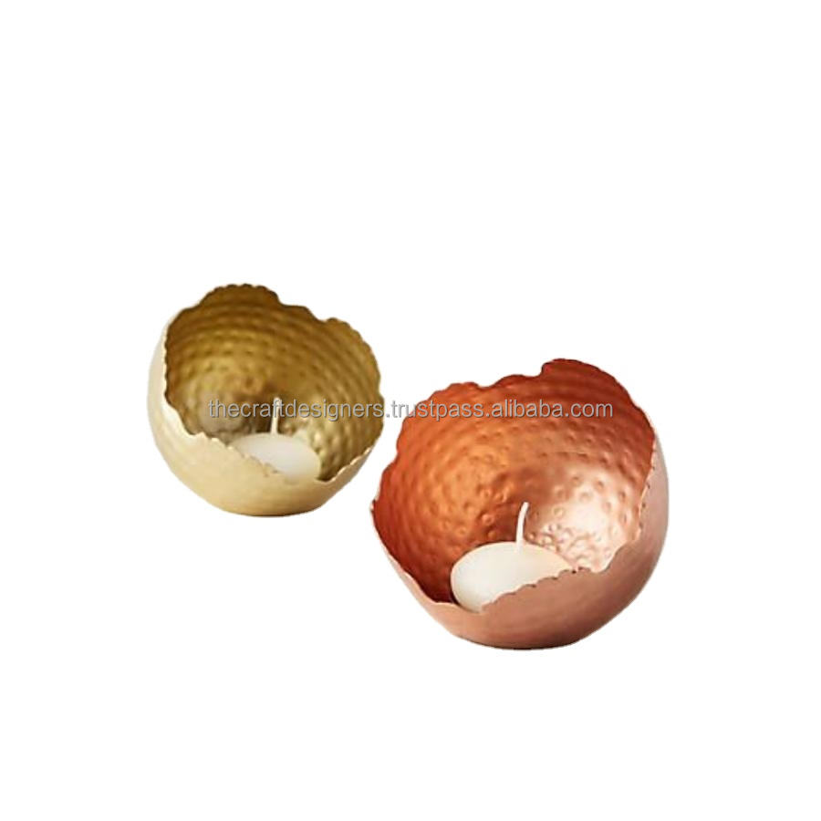 Decorative Gold & Copper Tone Tealight Candle Holder Votive Set Floral Design Accent Candle Jars And Wax Container For Christmas