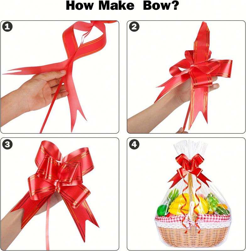 Decorative Gold Edged Hand Pulled Bouquet Butterfly Pull Bow Metallic Pull Ribbon Bow for Gifts and Events