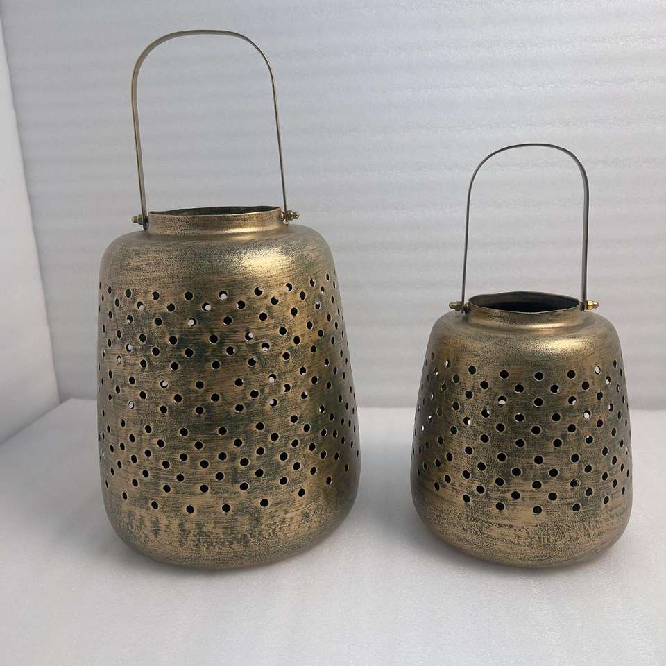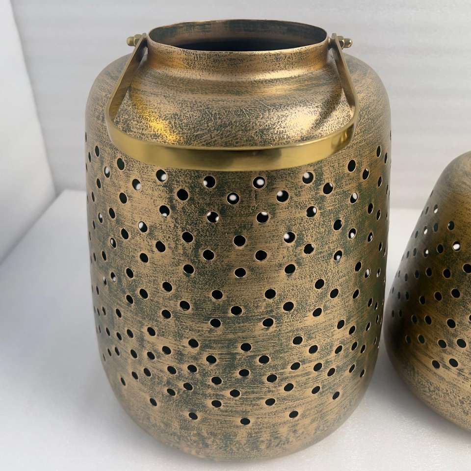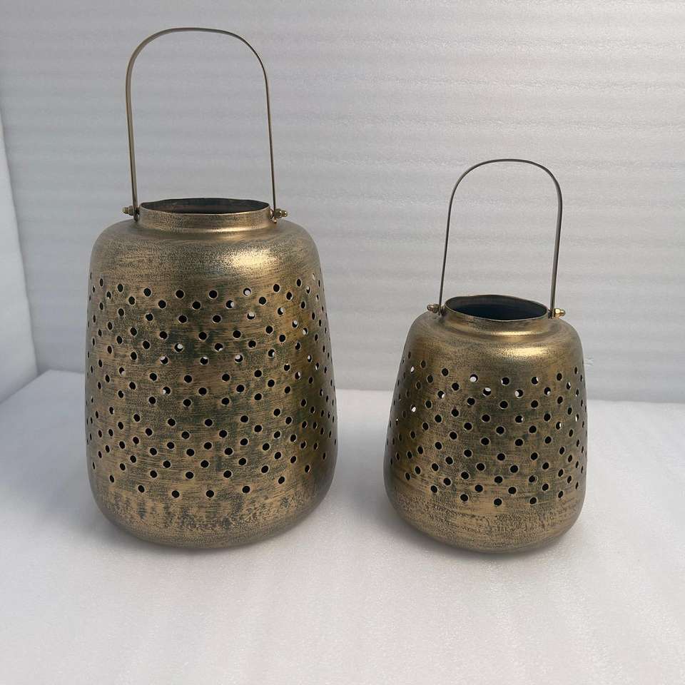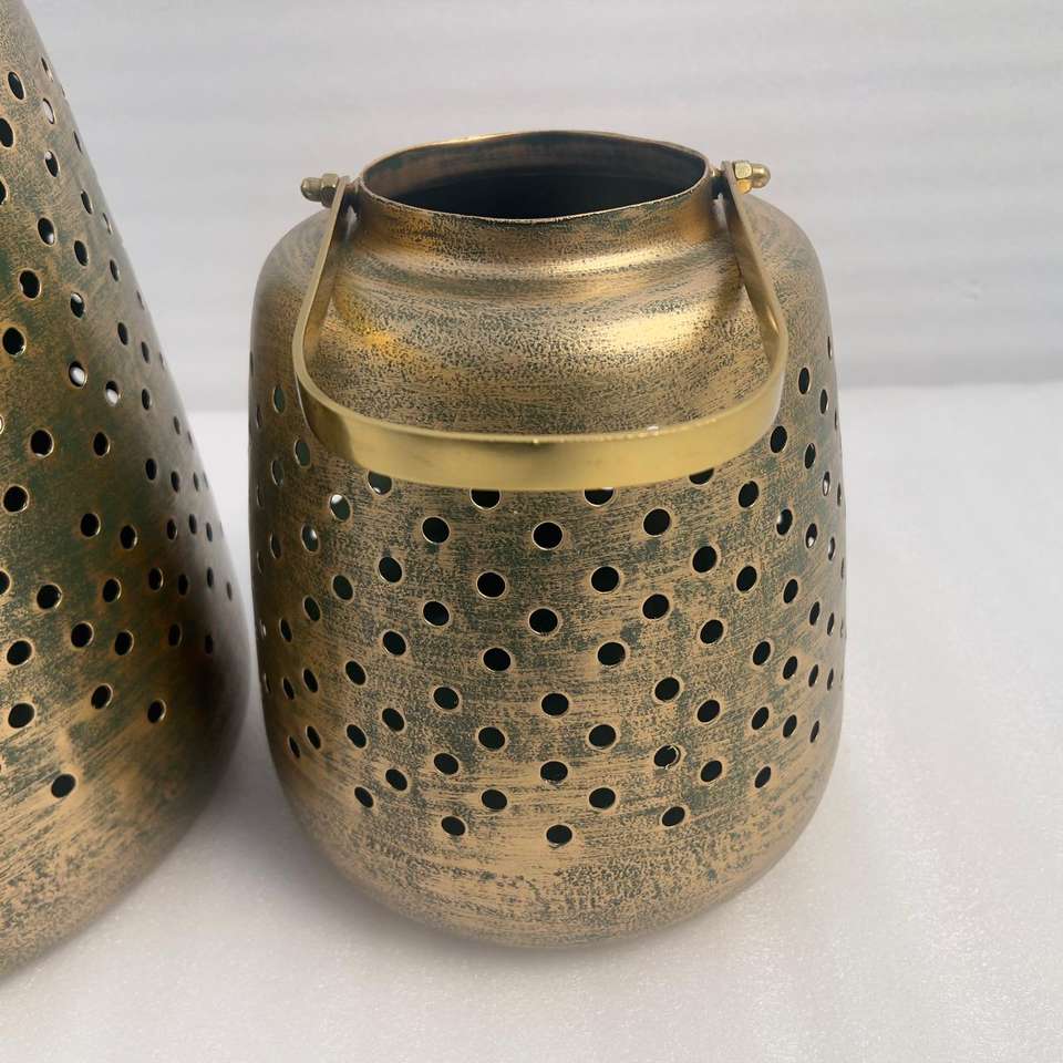Decorative Gold Finished Iron Lantern Enhancing Living Spaces Balconies And Entryways With Elegant Metal Craft And Glow