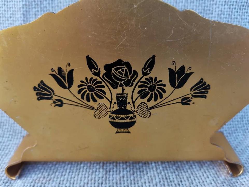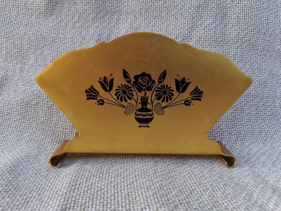Decorative Gold Finished Napkin Holder with Flower Print Perfect for Event Setups Dining Table and Tabletop Display From India