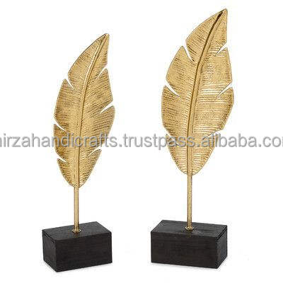 Decorative Gold Leaf on Marble Stand Decor Set of 2 Showpiece for Living Room Bedroom and Home Decor Standard