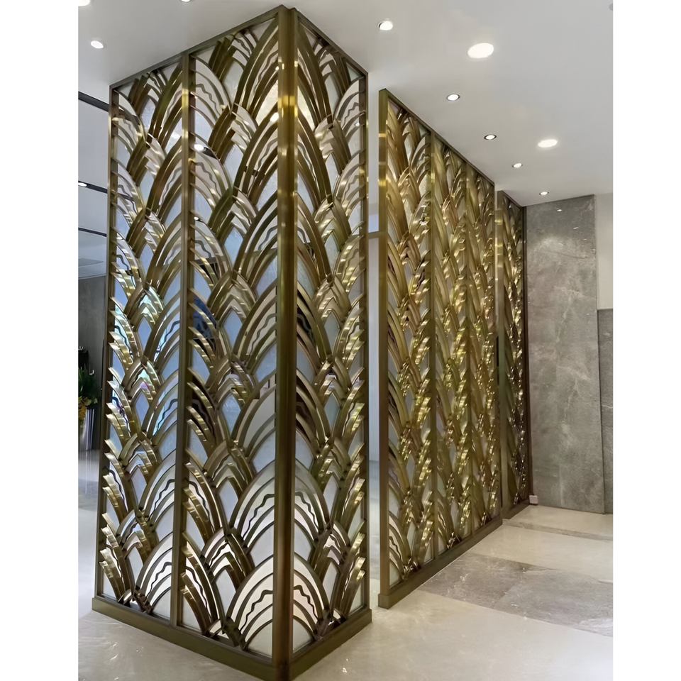 Decorative Gold Luxury Stainless Steel Room Divider with Laser Cut Panels Sliding Function Customizable Size for Modern Home Use