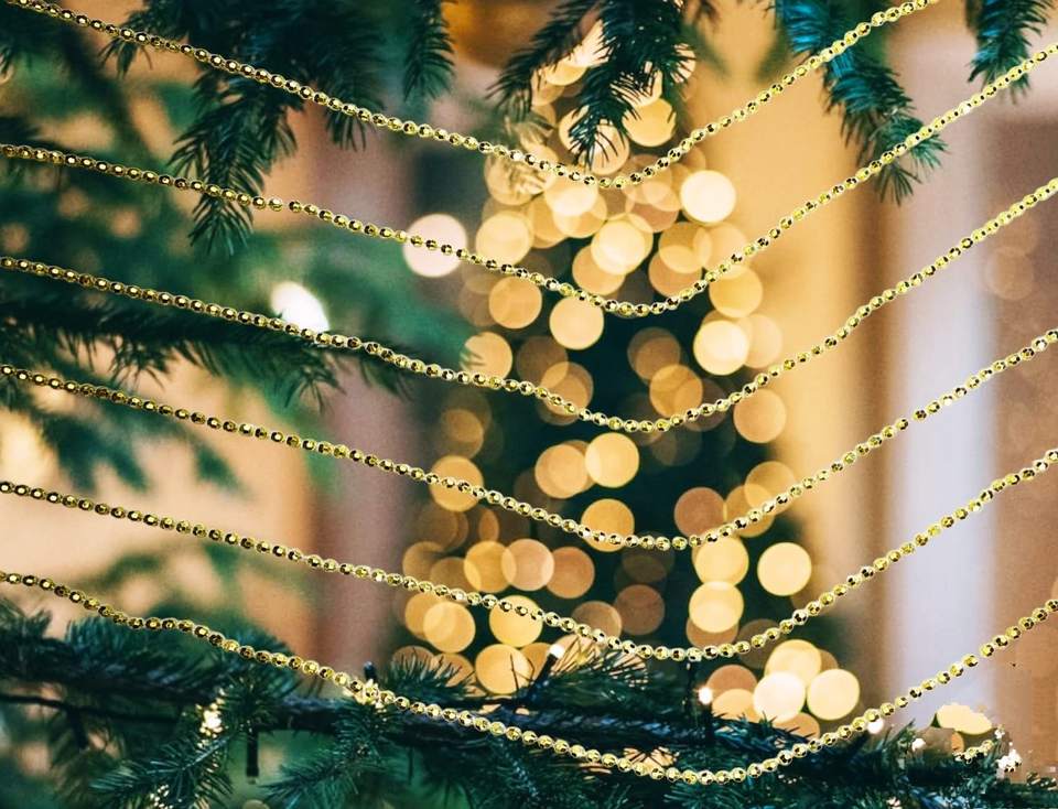 Decorative Golden Color Beaded Chain Garlands for Christmas New Year Festivals and Home Decoration