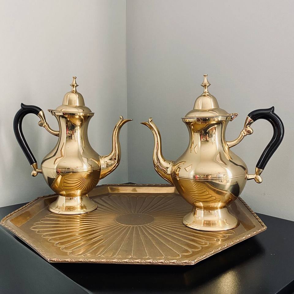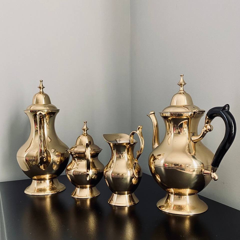 Decorative Golden Royal Style Tea And Coffee Kettle Set With Black Handles Modern Tabletop Set For Party And Dining
