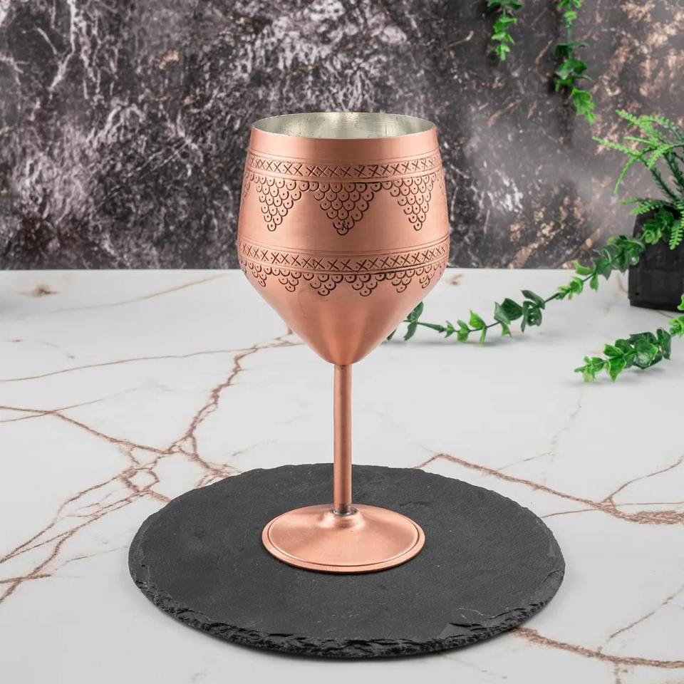 Decorative Graved Copper Wine Glass Handmade Stylish Elegant Drinkware for Home Bar Dining Party Use Handcrafted From India