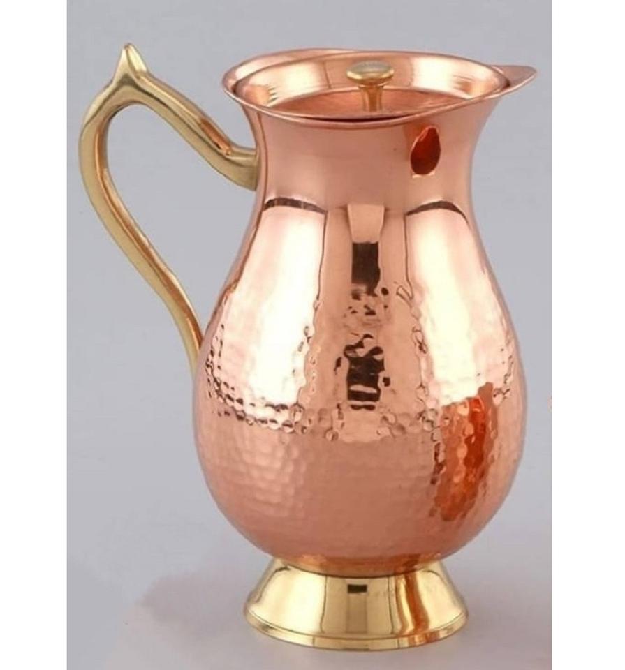 Decorative Hammered Copper Jug With Designer Brass Handle and Glossy Finish For Healthy Drinking