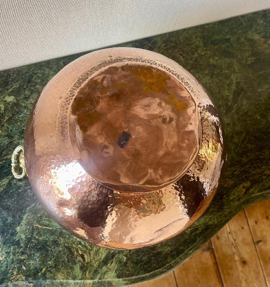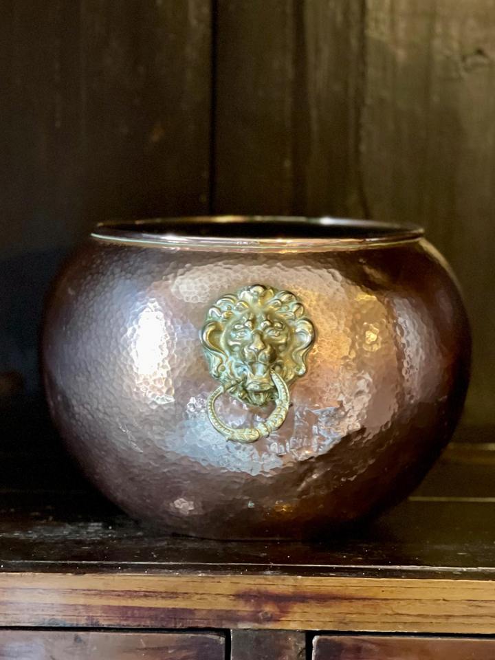 Decorative Hammered Round Planter Pot With Lion Face Handle Ideal For Garden Balcony And Table Decor Handcrafted From India
