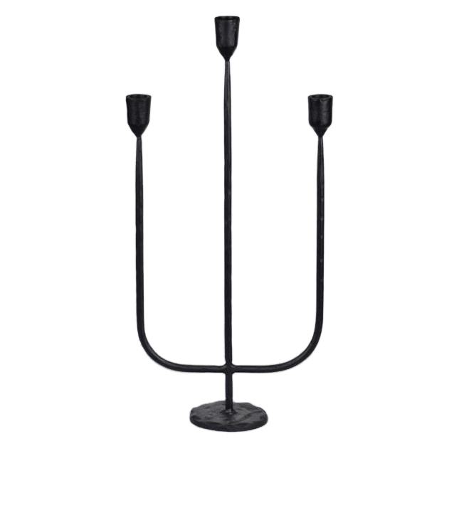 Decorative Hand Forged Aluminium Black Trident Candelabra Metal Tabletop Candle Holder with three Arms