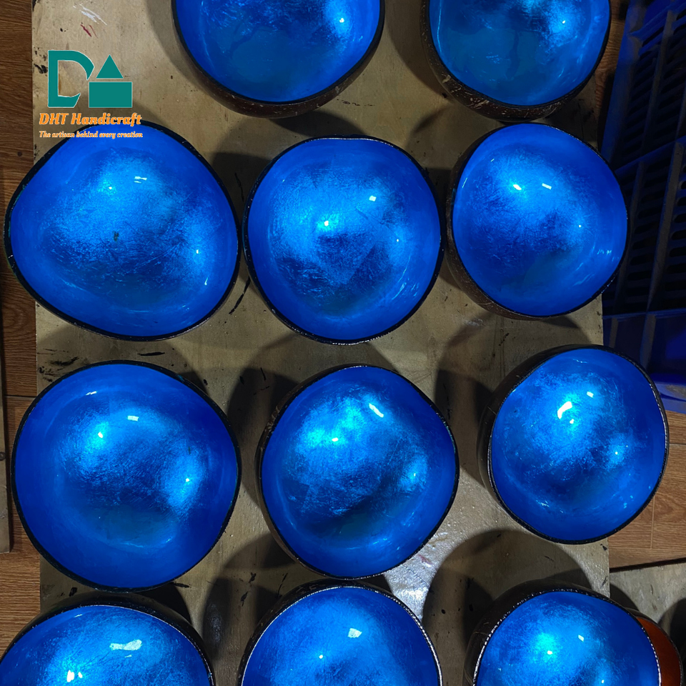 Decorative Hand Painted Lacquer Coconut Bowl with Rattan Vietnamese Eco-Friendly Party Tableware Free Sample B2B