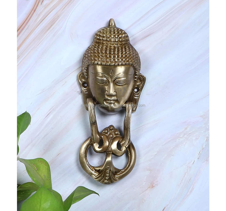 Decorative Handmade Brass Buddha Head Door Knocker with Screw Mount Hardware for Home and Temple Use