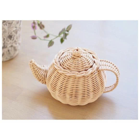 Decorative Handmade Rattan Tea Set - Miniature Woven Teapot and Cups for Playroom & Home Decor