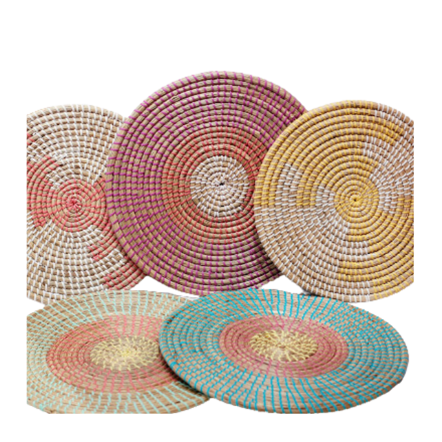 Decorative Handmade Seagrass Plate Basket Vietnam Wall Hanging Natural Rattan Bamboo Wicker Rustic Eco-Friendly Bohemian Style