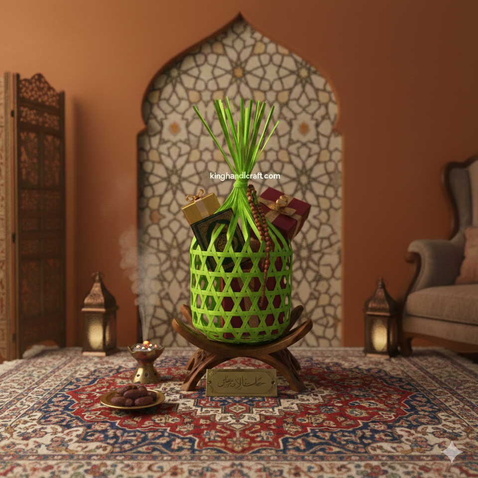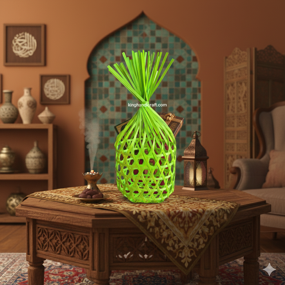 Decorative Handmade Circle Storage Basket Lid Modern Eco-Friendly Woven Gift Hamper for Ramadan Eid Celebrations Multi-Purpose