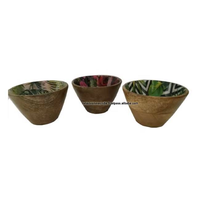 Decorative Handmade Wooden Serving Bowl Set of 3 Perfect for Dry Fruits Snacks & Salads Natural Tableware Home & Dining Decor