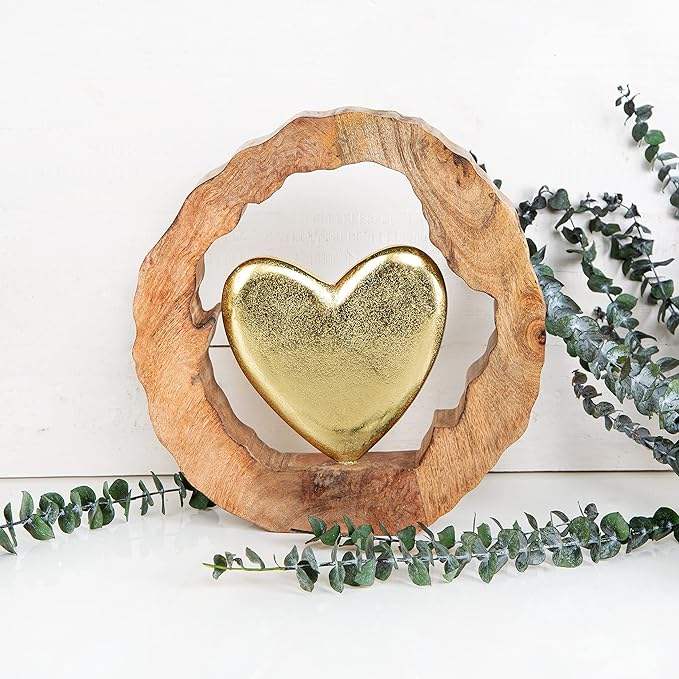 Decorative Heart Gold Christmas to Stand up Metal Wood Gift Birthday Wedding 29 cm With Customized Color and Sizes