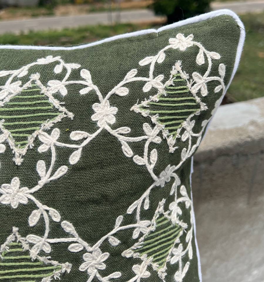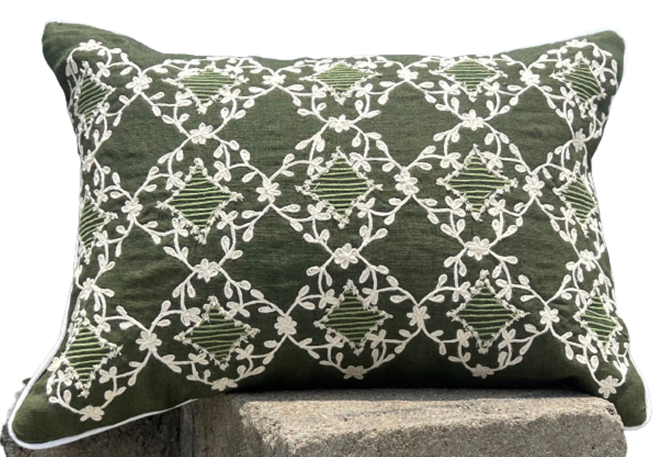 Decorative Indian Homemade 14*20 Inches Linen Embroidered Lumbar Cushion Covers Gifts For Her And House Warming Gifts
