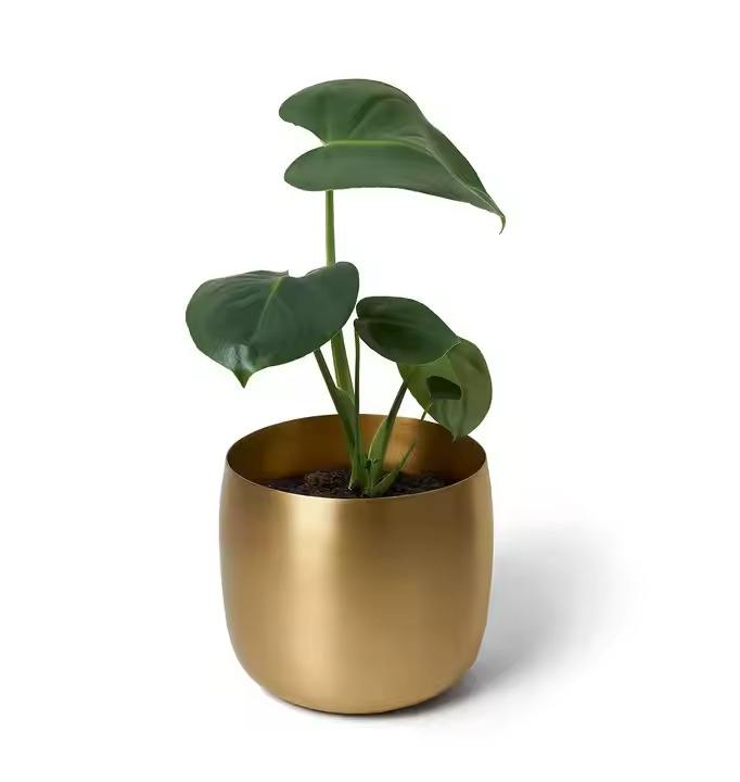 Decorative Indoor Brass Planter Pot Golden Finish for Living Room Table Accent or Office Desk Display