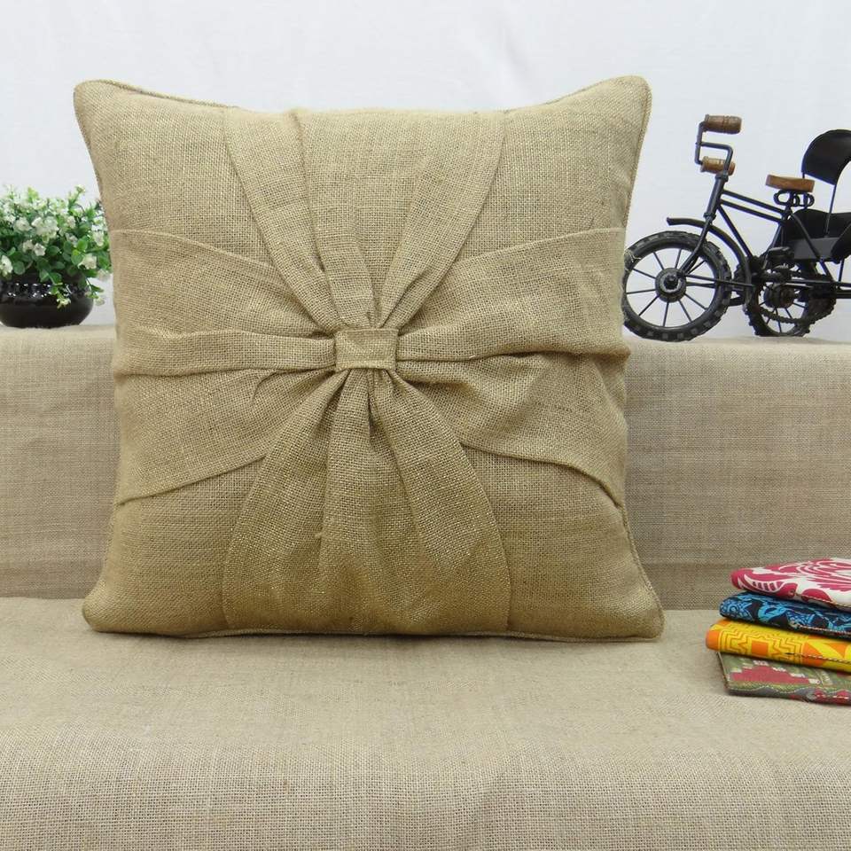 Embroidered Jute Cushion Covers Leaf Floral Plant Patterns Hand Stitched for Home Decor for Living Room Couch Hotel Decoration