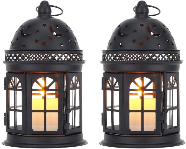 Decorative Lanterns Metal Candle Lantern Vintage Style Hanging Lantern for Indoor Outdoor Events Parties and Weddings Black