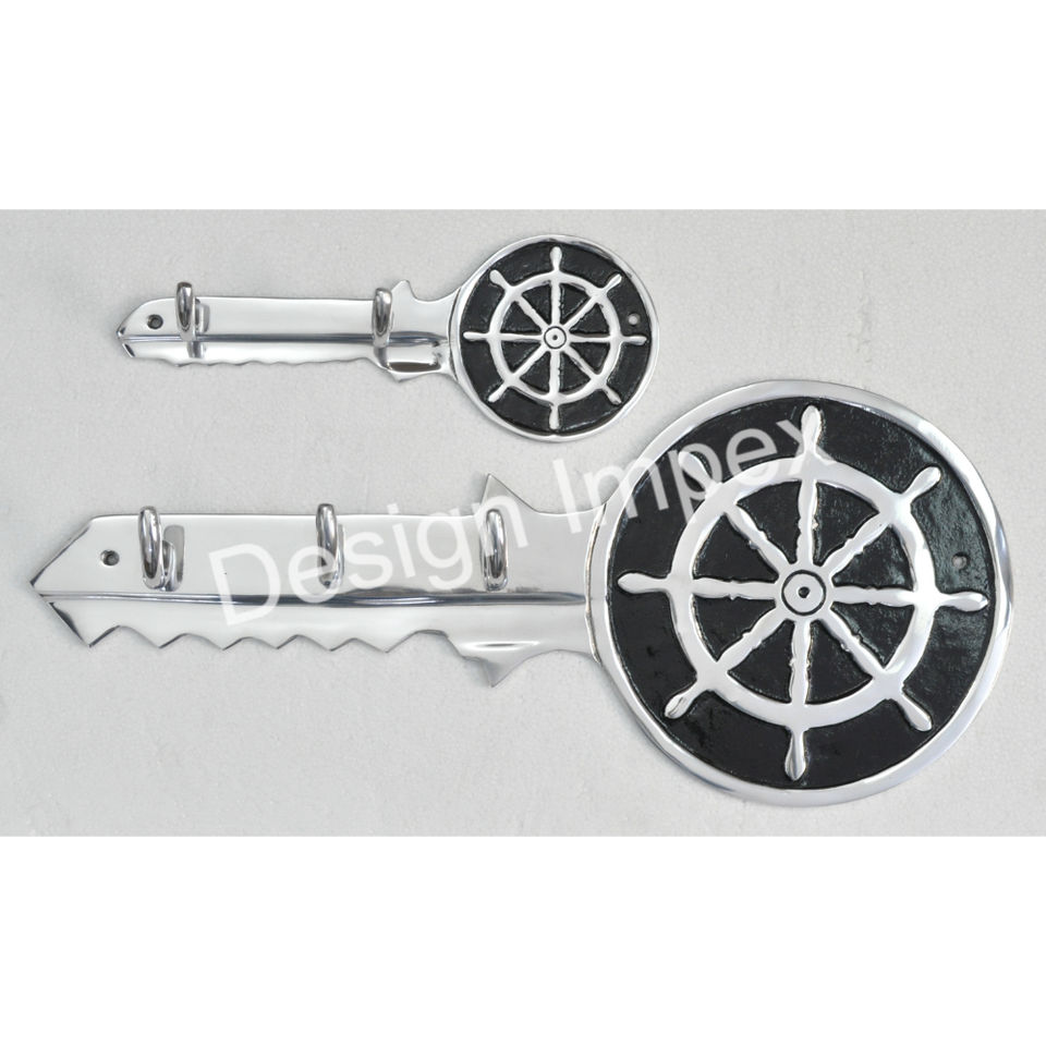 Decorative Large Key Hooks and Rail Easy Installation Type Metal Hook Cast Aluminium Solid Key and Nautical Ship Wheel Hooks