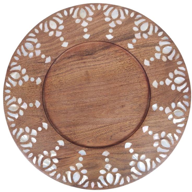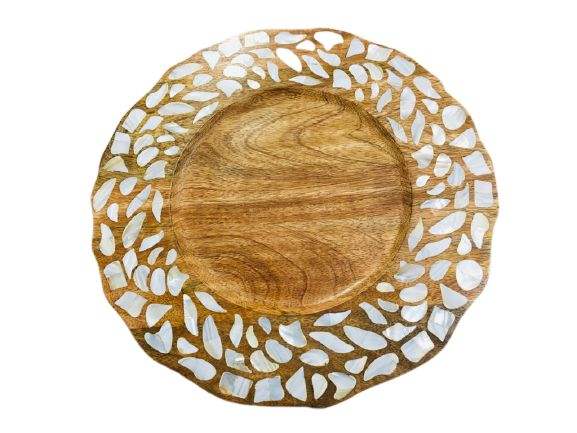 Decorative Mango Wood Plate with MOP Inlay Elegant Wooden Charger Plate for Dining Table Decor Wedding Gift Home Display Tray