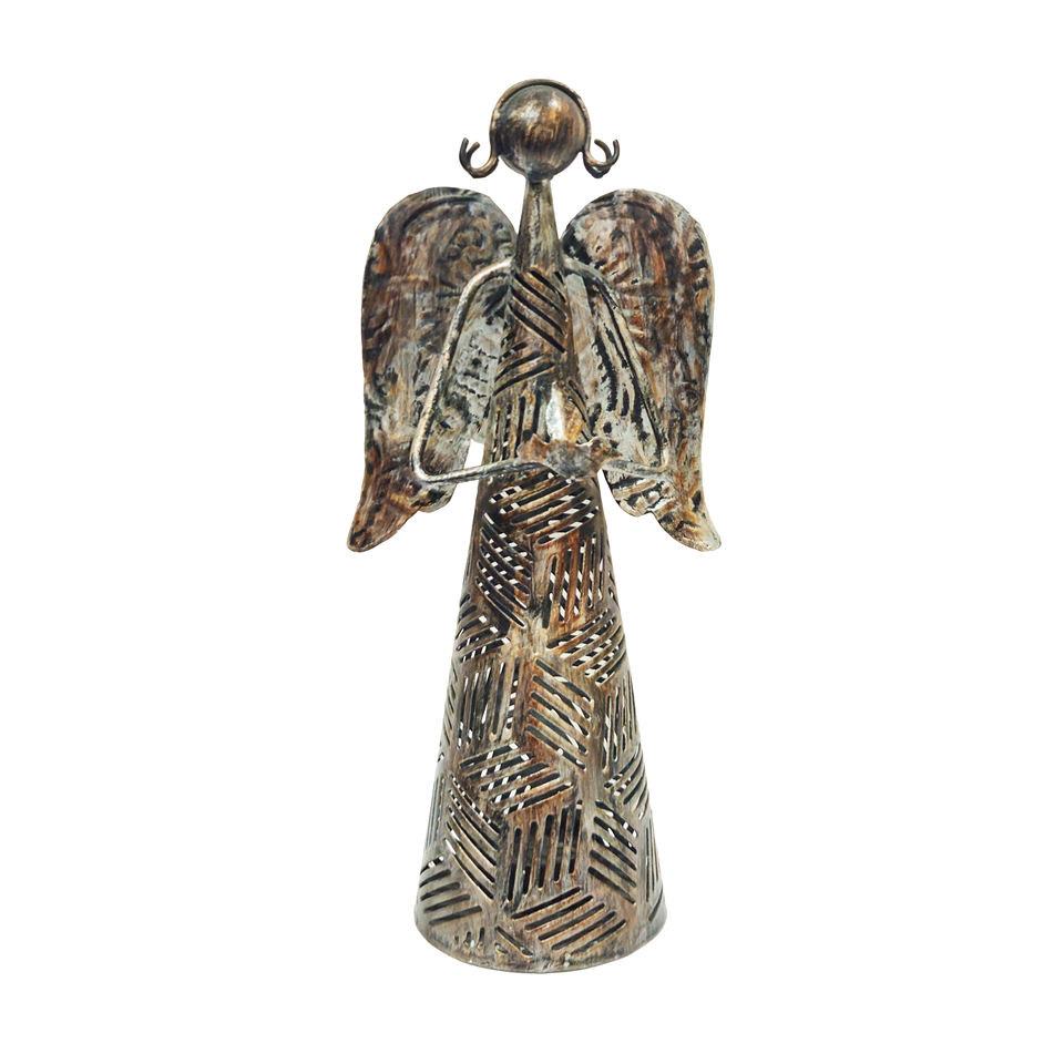 Decorative Metal Angel Figurine with Hollow Cutwork Body and Artistic Wing Design for Home Decoration sculpture for living room