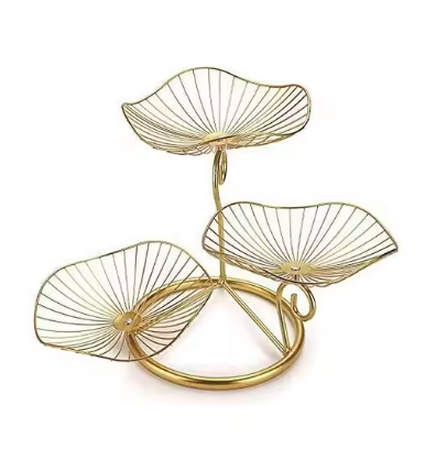 Decorative Metal Basket High Quality Premium 3-Tire Shape Luxury Storage Baskets Gold Color Hot Selling Metal Wire Baskets