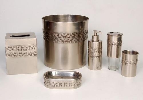 Decorative Metal Bathroom Accessories Tissue Box Soap Dispenser Toothbrush Holder Waste Bin Set