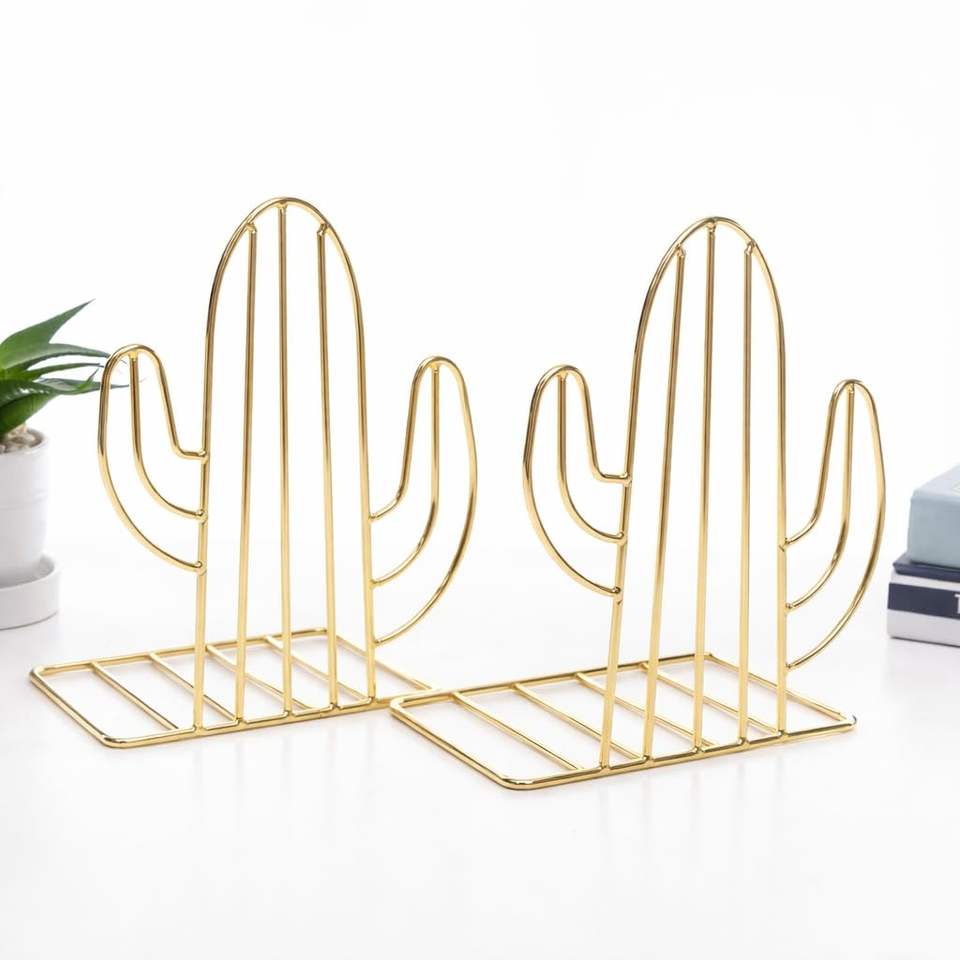 Decorative Metal Bookends for Shelves Gold Cactus Book Stand Organizer Modern Book Ends for Home Office Study