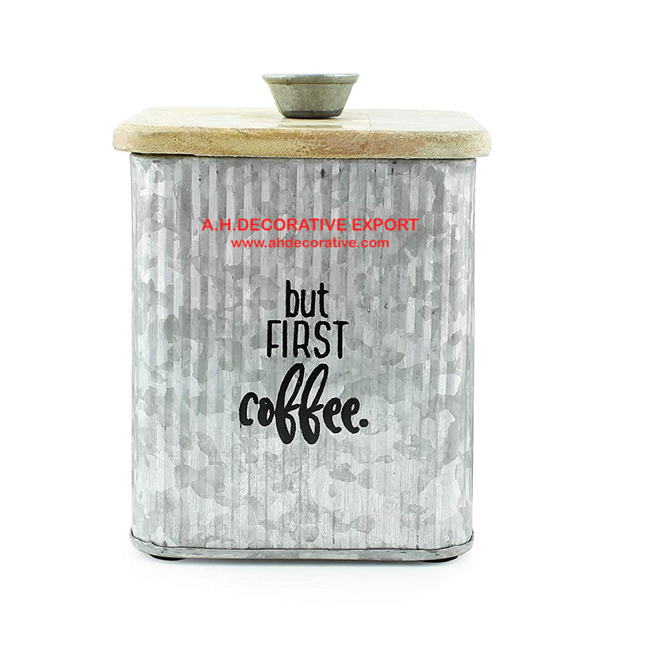 Decorative Metal Galvanized Canister Sets with Wooden Lid Home Kitchen Decorative Canister Set of 3 for Sale