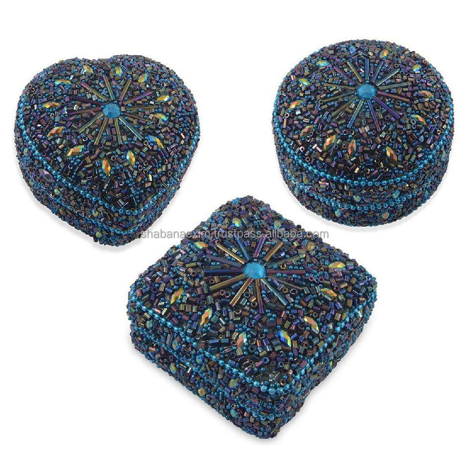 Decorative Metal Jewelry Box Treasure Trinket Set of 3 Pcs Ring Earrings Necklace Keepsake Gift Holder Case for Girls Women