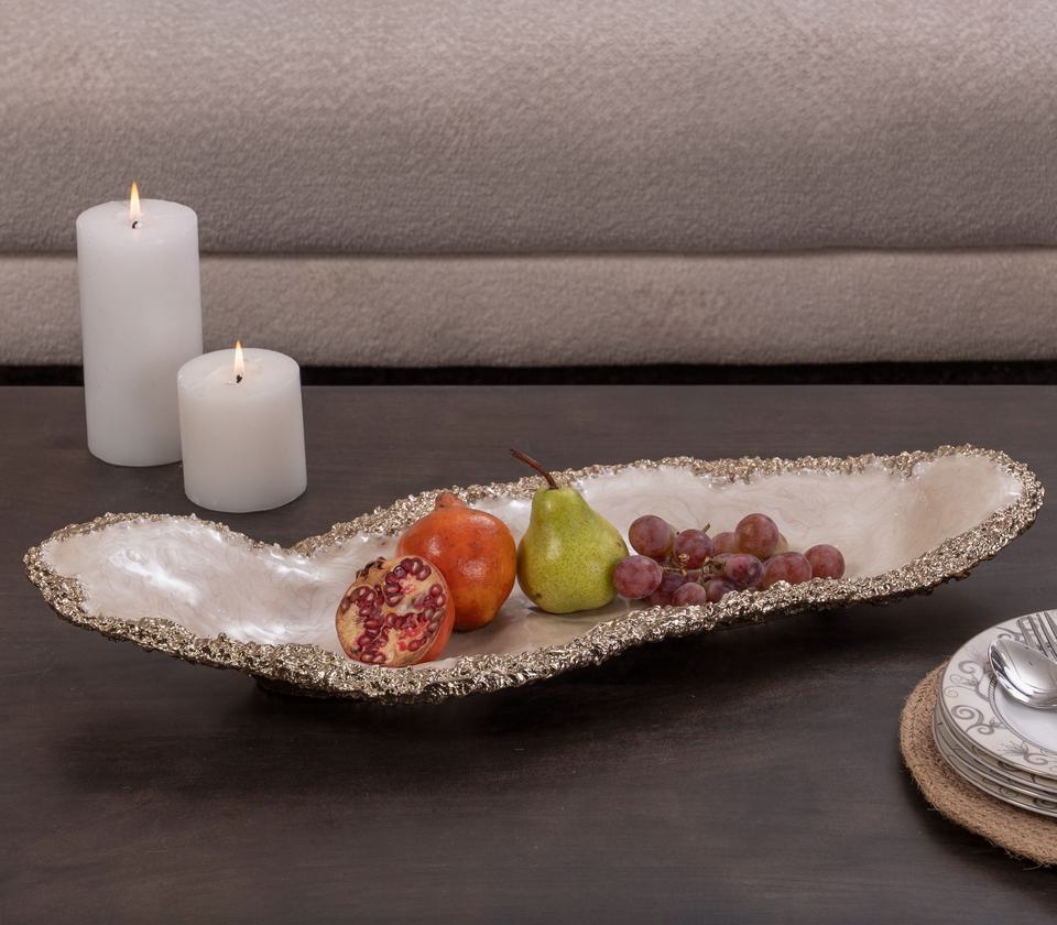 Decorative Metal Serving Tray with Glass Bowl and Floral Stand Luxury Table Centrepiece