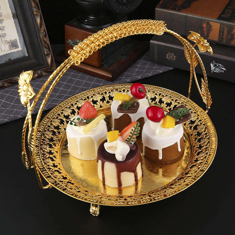Decorative Metal Serving Tray with Handle for Fruit Snacks Gift Display Home Hotel Restaurant Table Centerpiece Organizer Use