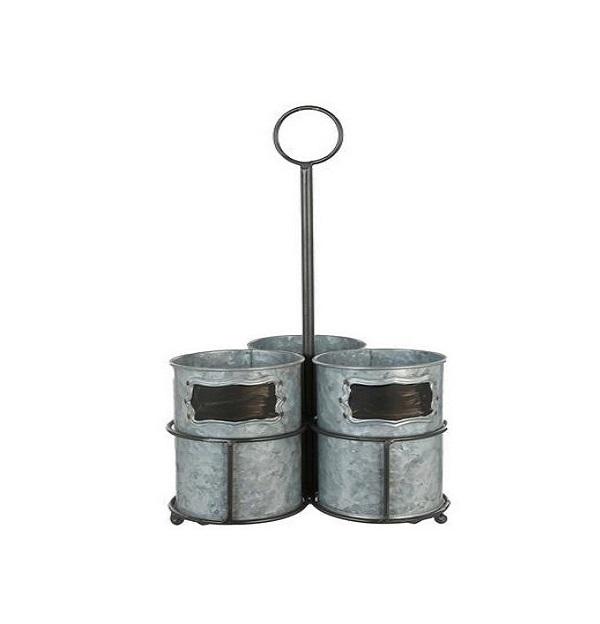 Decorative Metal Utensils Holder with Separate Stand for Forks Knife & Spoons Metal Utensil Holder Organizer Galvanized Caddy